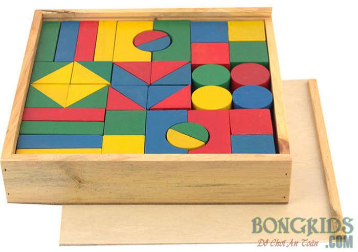 - Giúp con làm quen với các hình khối căn bản như khối chữ nhật, khối lập phương, khối trụ, bán nguyệt và tam giác và cách phối hợp các khối hình với nhau để tạo nên một sản phẩm mới qua đó kích thích trí tưởng tượng của con thêm phong phú và sáng tạo hơn.