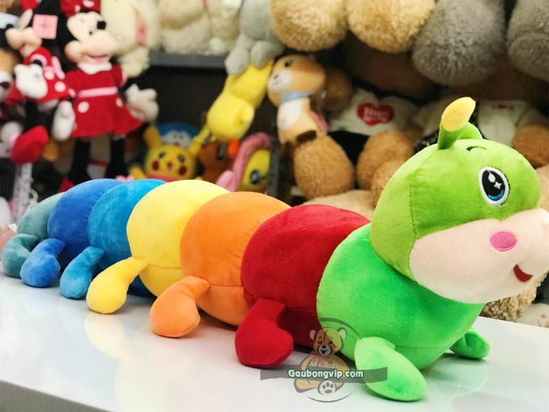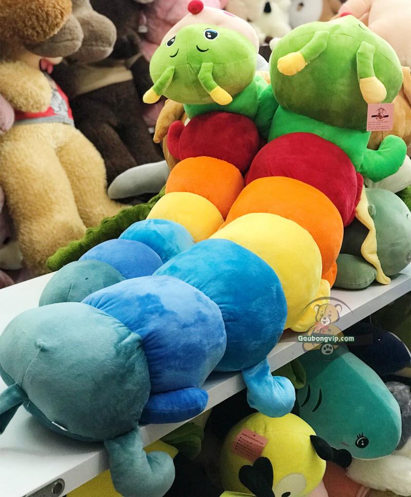 Với thiết kế thon dài, mô phỏng hình dáng con sâu mới với nhiều khúc cam, xanh, đỏ, vàng khác nhau tạo nên màu sắc khá bắt mắt, khuôn mặt xinh xắn dễ thương. Ngoài ra, em gối ôm sâu chân này còn được thiết kế khá cầu kỳ với nhiều chân nhỏ. Chiếc gối này sẽ giúp bé có giấc ngủ sâu và ngon hơn
