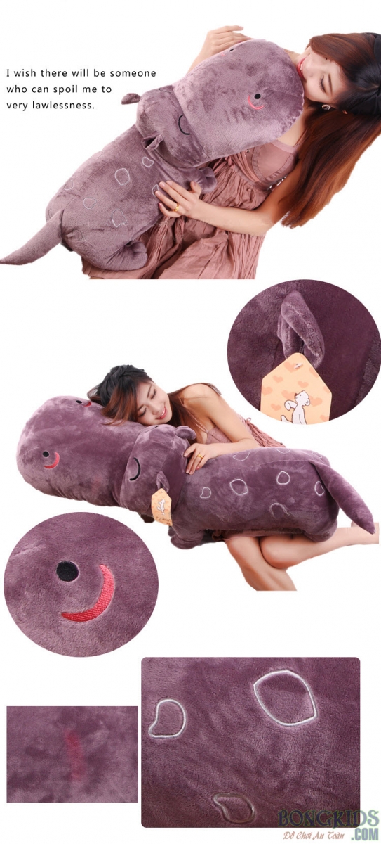 Chất liệu: Bên ngoài là lớp nhung mịn cao cấp, bên trong là 100% bông xoắn ba chiều theo tiêu chuẩn quốc tế với độ đàn hồi rất cao và siêu sạch, được sản xuất theo công nghệ Châu Âu, làm cho em hà mã này luôn căng, tròn và tạo cảm giác thoải mái khi ôm