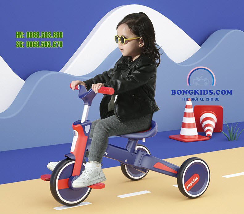 Xe đạp ba bánh đa năng cho bé Playkids S02 có cần đẩy
