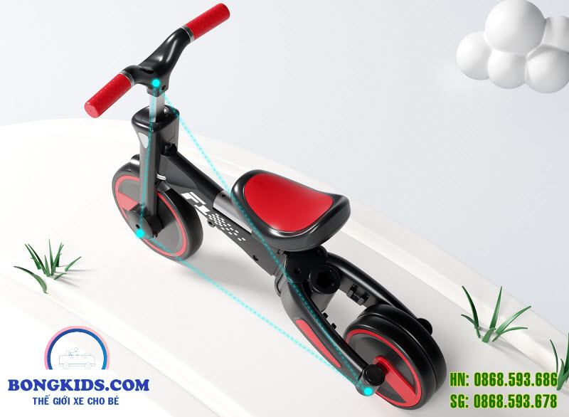 Có thể chập 2 bánh sau lại thành 1 để làm xe thăng bằng