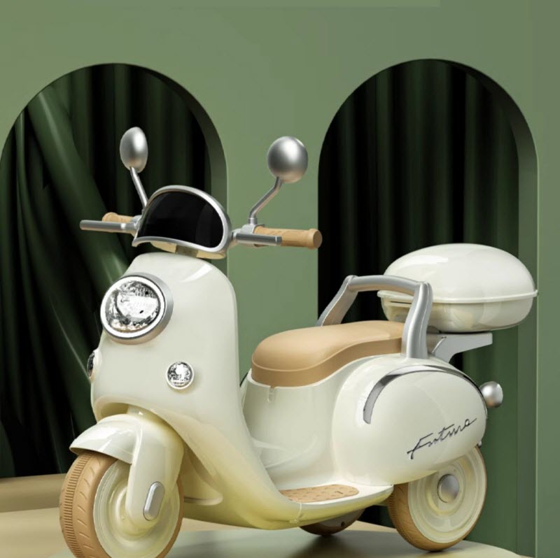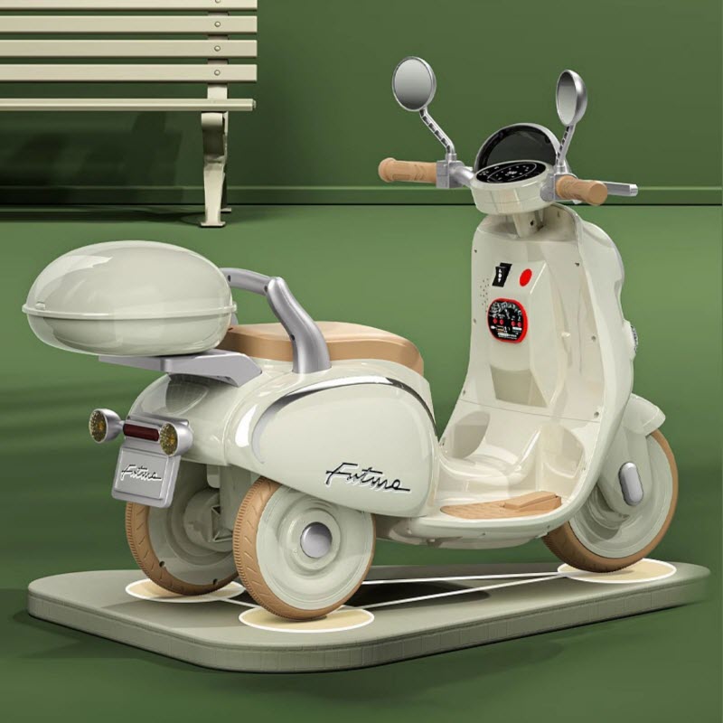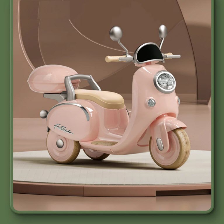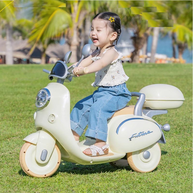 - Chức năng: Xe máy điện trẻ em Vespa Fucture 618 được trang bị đầy đủ còi, đèn, nhạc, chân ga cho bé tự vận hành, cốp xe, gương chiếu hậu,... --> bé nào cũng thích